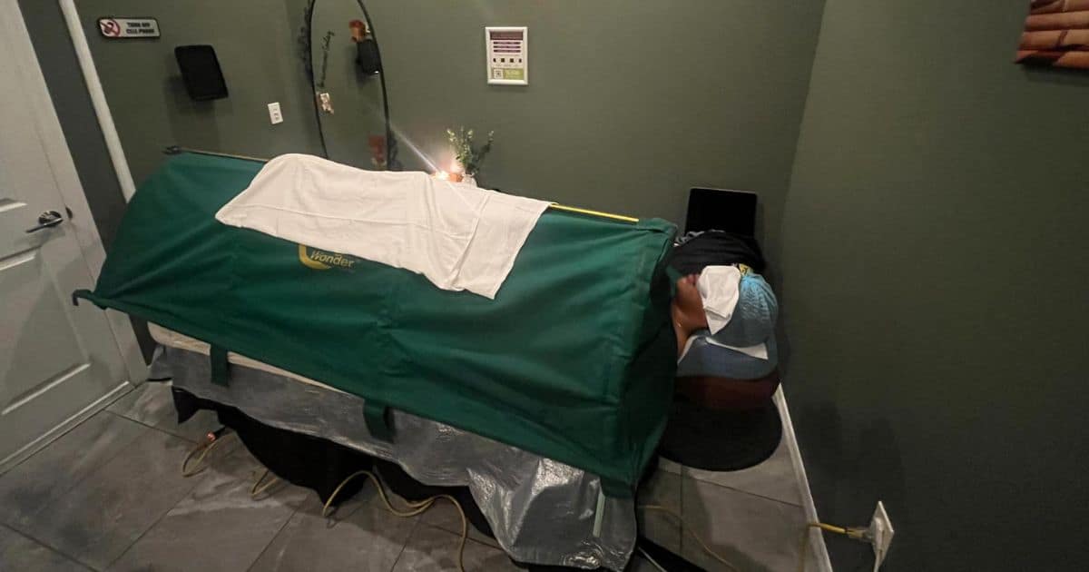 Our herbal steam detox (steam canopy treatment) surrounds your body in warm, therapeutic steam while you relax comfortably on a massage table.